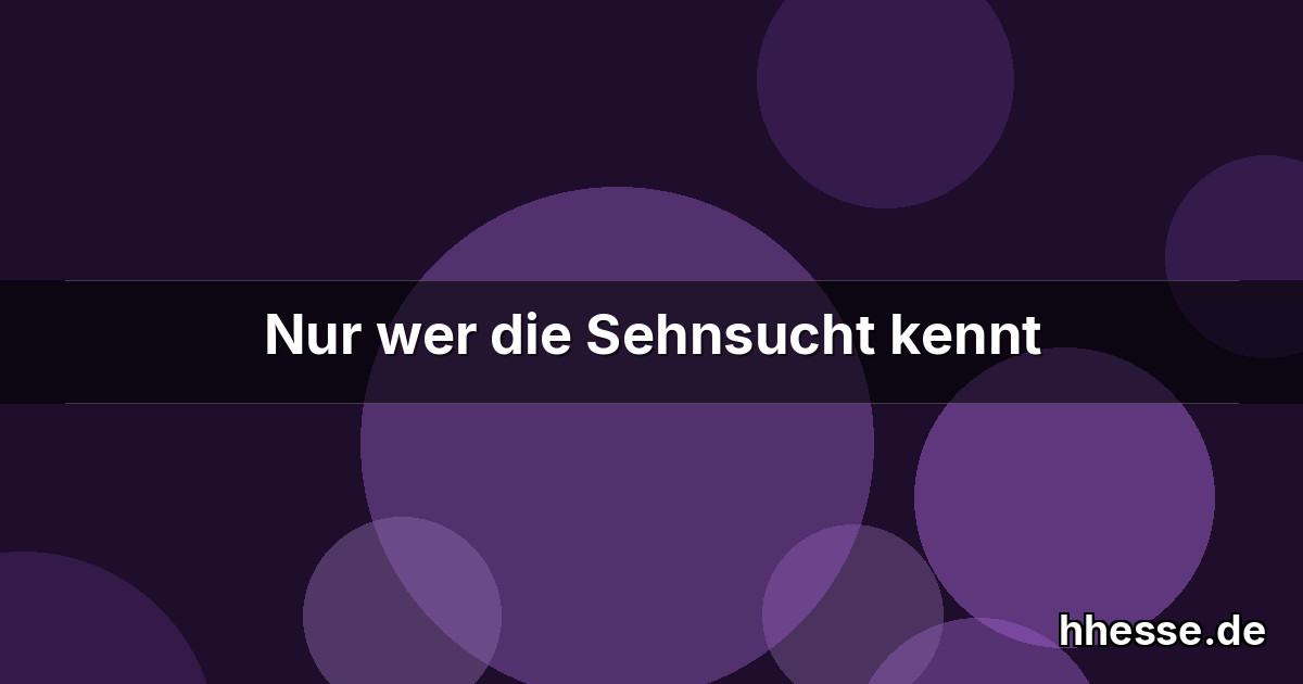 Nur wer die Sehnsucht kennt, Weiß, was ich leide! Allein und abgetrennt Von aller Freude, Seh‘ ich ans Firmament Nach jener Seite. Ach! der mich liebt und kennt, Ist in der Weite. Es schwindelt mir, es brennt Mein Eingeweide. Nur wer die Sehnsucht kennt, Weiß, was ich leide!