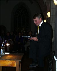 Es mag als stilistischer Bruch gedeutet werden, dass Michels nach dem Vortrag seines Essays umschwenkte zu heiteren Hesse-Versen im Wilhelm-Busch-Stil. Diese aber – nun in der neuen Gesamtausgabe erstmals gedruckt – nehmen unmittelbaren Bezug auf Hesses Zeit in Maulbronn, dokumentieren in lustiger Weise den Lesehorizont des Schülers Hesse von Schiller bis zu Karl May. Ist’s auch sicherlich keine große Dichtung (und somit durchaus verzichtbar), so regten die Verse das Publikum zum Schmunzeln an und zeigten auf, dass die wenigen Monate Seminarleben in Maulbronn für Hesse auch ein Hort unbeschwerten Schülerlebens sein konnten.